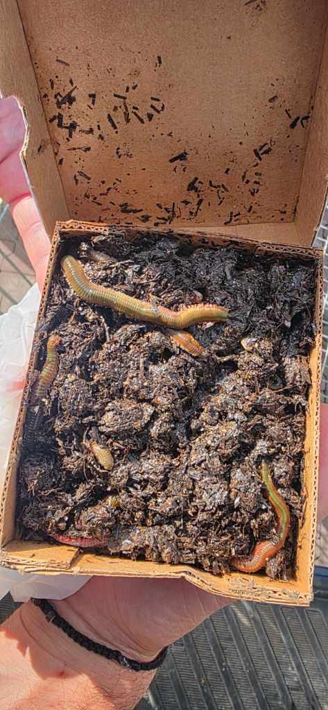Jem has applied for his local fishing permit and went to the local suppliers for some bait, expecting a tub of pellets. The shop owner insisted that live Korean lugworms were the only possible option, and now we are flat sharing with these wretched wriggling beasties. They are indestructible and still alive after Jem put them in the freezer section of the fridge by mistake for two days. Who would be a fisherman!! π€’