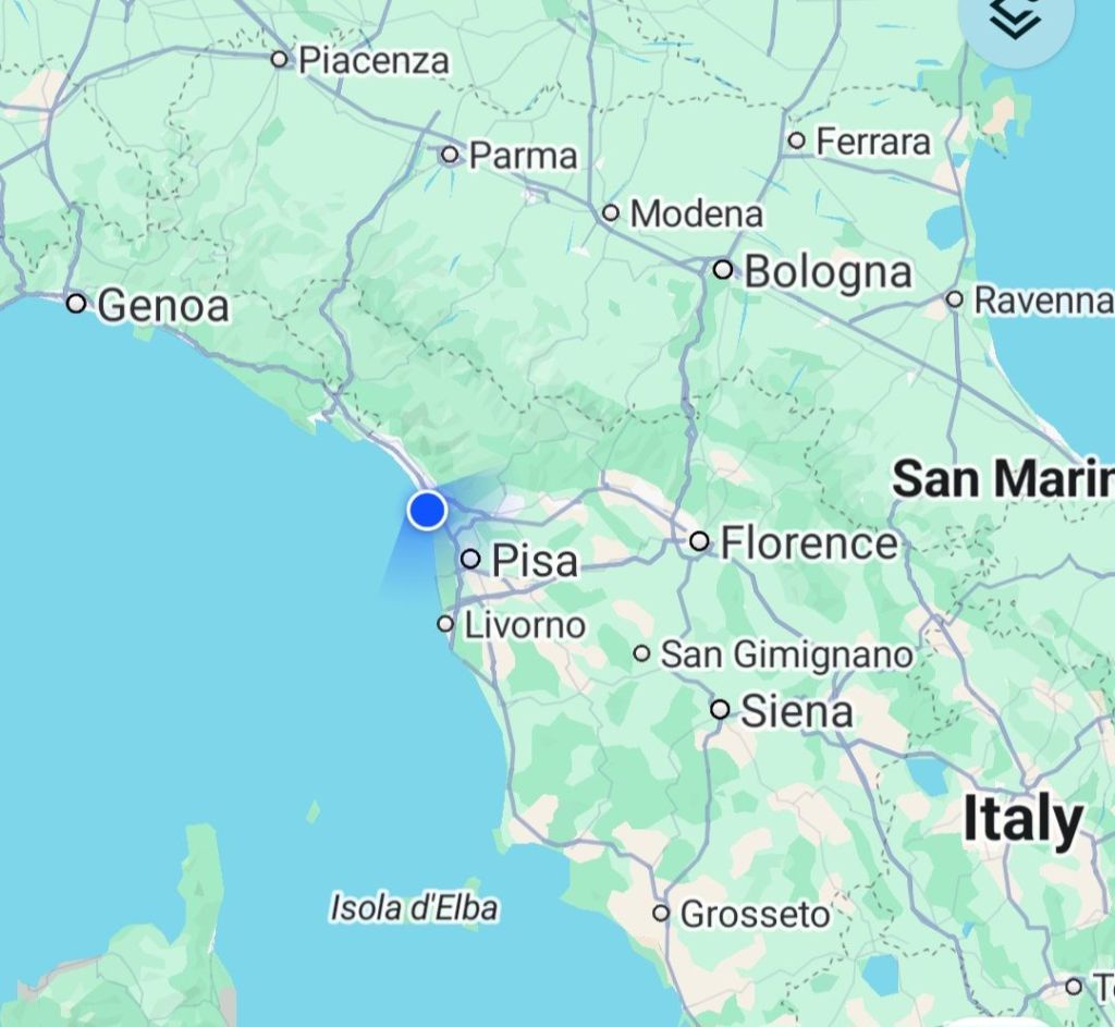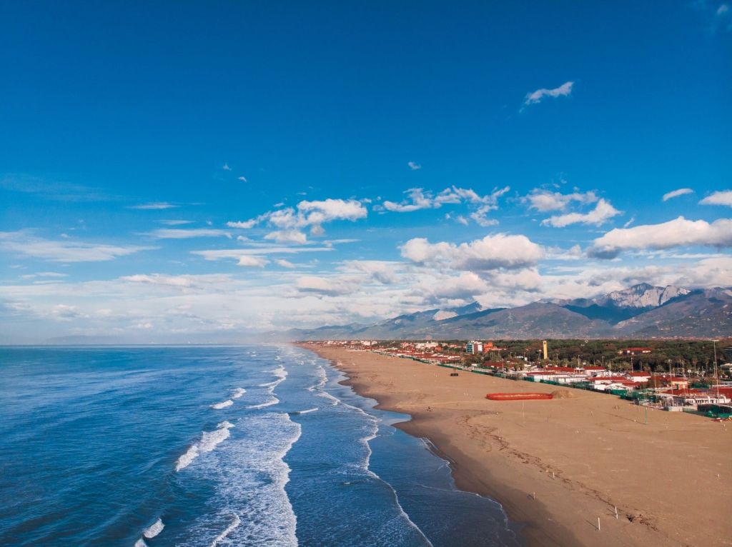 Yesterday evening we arrived in Viareggio, a coastal resort town in Tuscany, half an hour’s drive north west from Pisa. Established in the 16th Century, it has a population of about 60,000 and is famous for its annual carnival. The views here across the Alps are spectacular, and the huge sandy beach rugged and wild. Having spent a while on the Ligurian coast punctuated by well-manicured medieval villages, tiny beaches, dense woodland and precipitous cliffs, it was a welcome change of terrain.